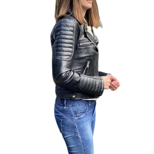 Fabricada en piel genuina de alta calidad, esta chaqueta destaca por su acabado desgastado que aporta un aire vintage y auténtico, como si llevaras contigo la historia del rock en cada costura. Los detalles metálicos, cremalleras robustas y tachuelas estratégicamente colocadas realzan su estética rebelde sin perder funcionalidad ni comodidad. Su corte entallado resalta la figura femenina mientras te permite moverte con total libertad.